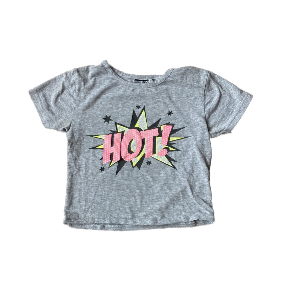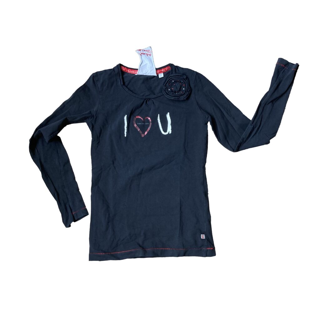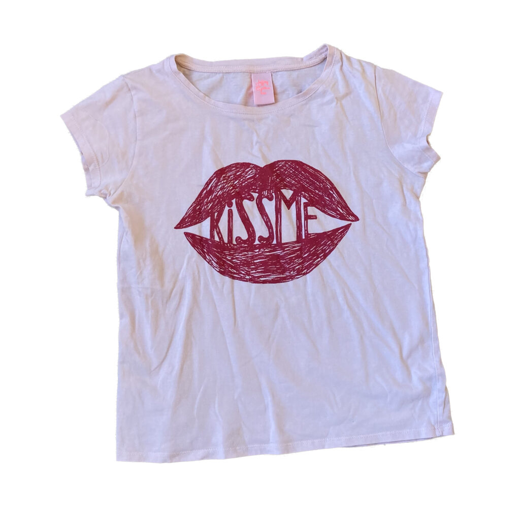 This collection of girls’ clothing, from size 50 to 164, shows that the clothing industry still “markets” very young girls as loveable, kissable, and huggable. We force this message on our daughters. And who do you think benefits from this?